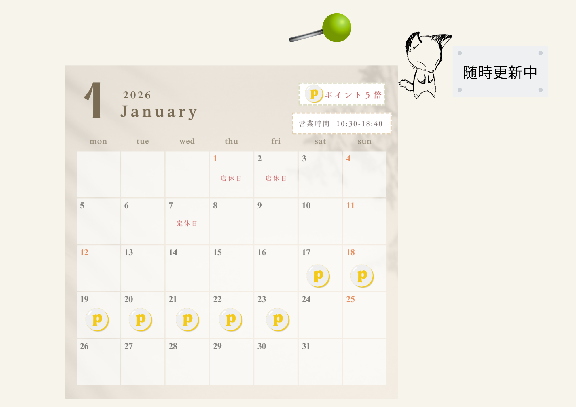 - 第1、3水曜日※売り出しを除く(詳しくは公式LINEにて毎月更新)