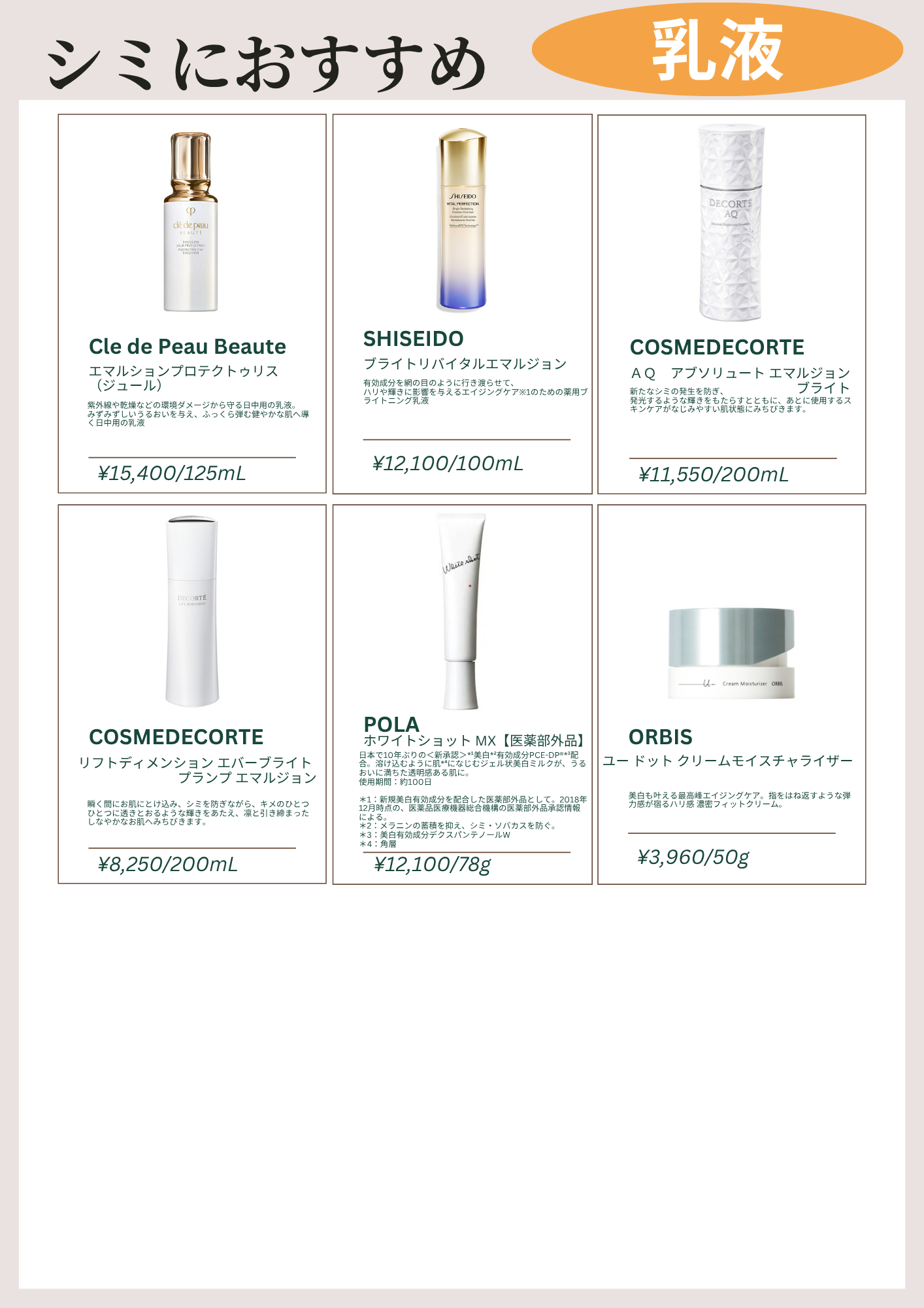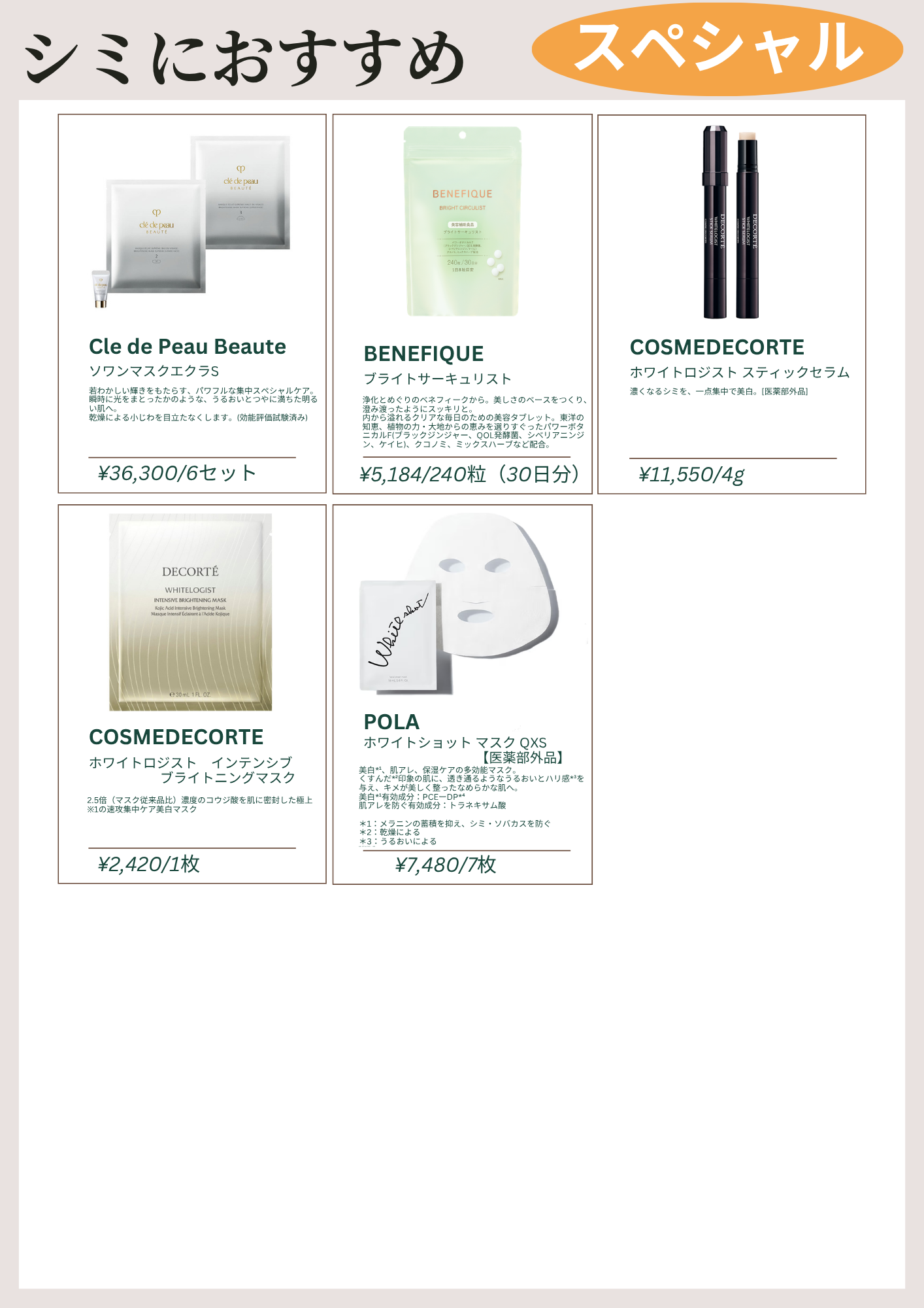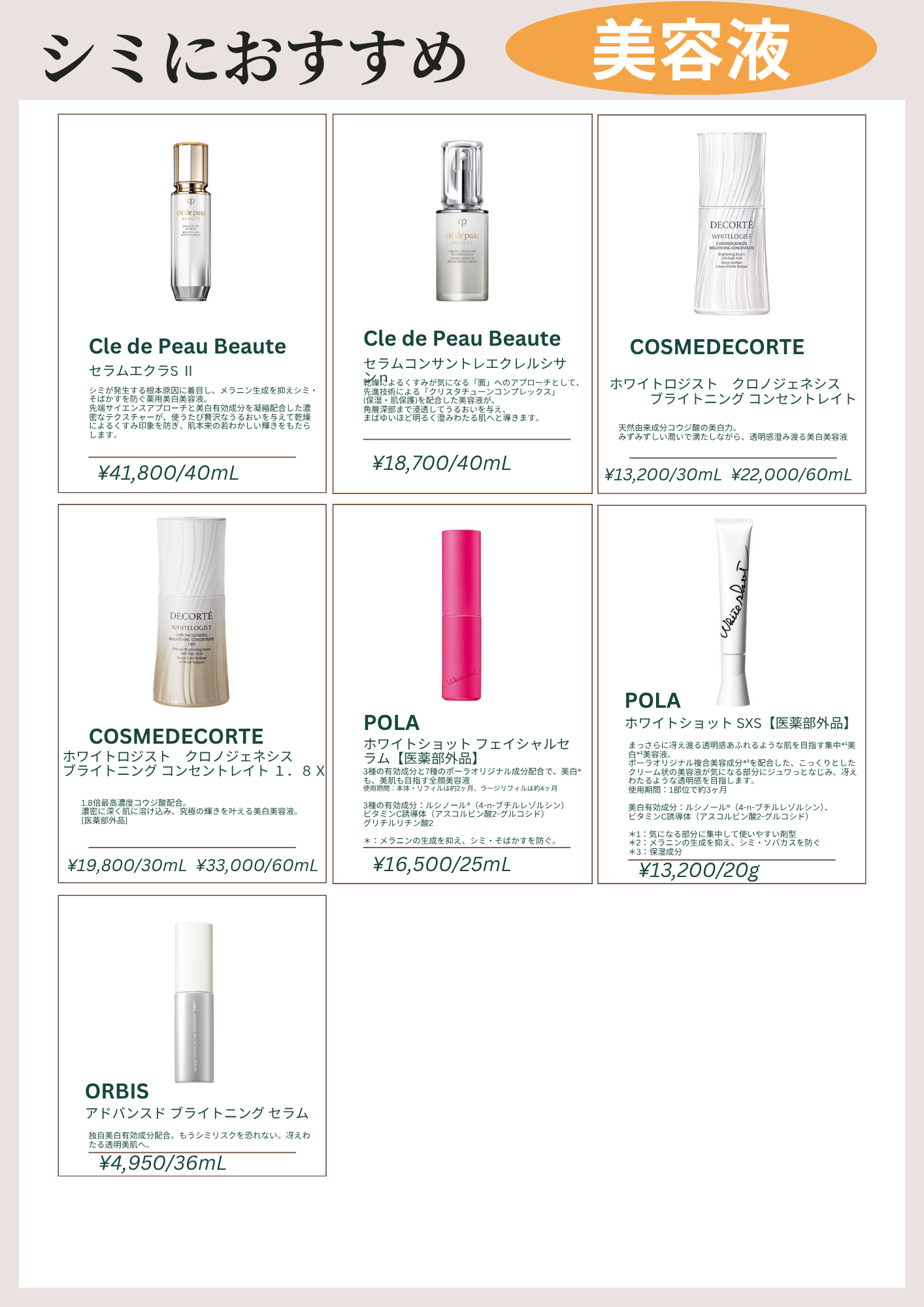 シミにお悩みのお客様にとっておきのおすすめ商品をご紹介させていただきます!!
